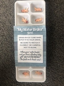 When the ice is fully melted and the baby is free floating the player yells My Water Broke The guest whos water breaks first and the baby is born wins the game. Ice Ice Baby. Clear cups or Dixie cups will work too Fill an ice cube tray or one or two or more depending on the number of guests you are expecting with the miniature babies.