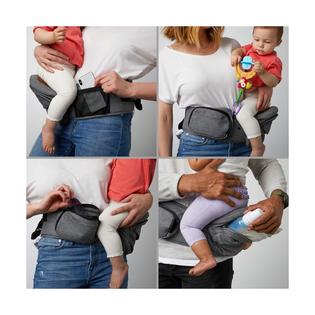 Tushbaby is a strap-free ergonomic hipseat that evenly distributes your babys weightso you can carry your little one longer and more comfortably. Designed to fit 23-44 inch waist add up to 23 more inches with our Waistband Extender Can be used for breastfeeding support. Comfortable washable and with plenty of pockets.